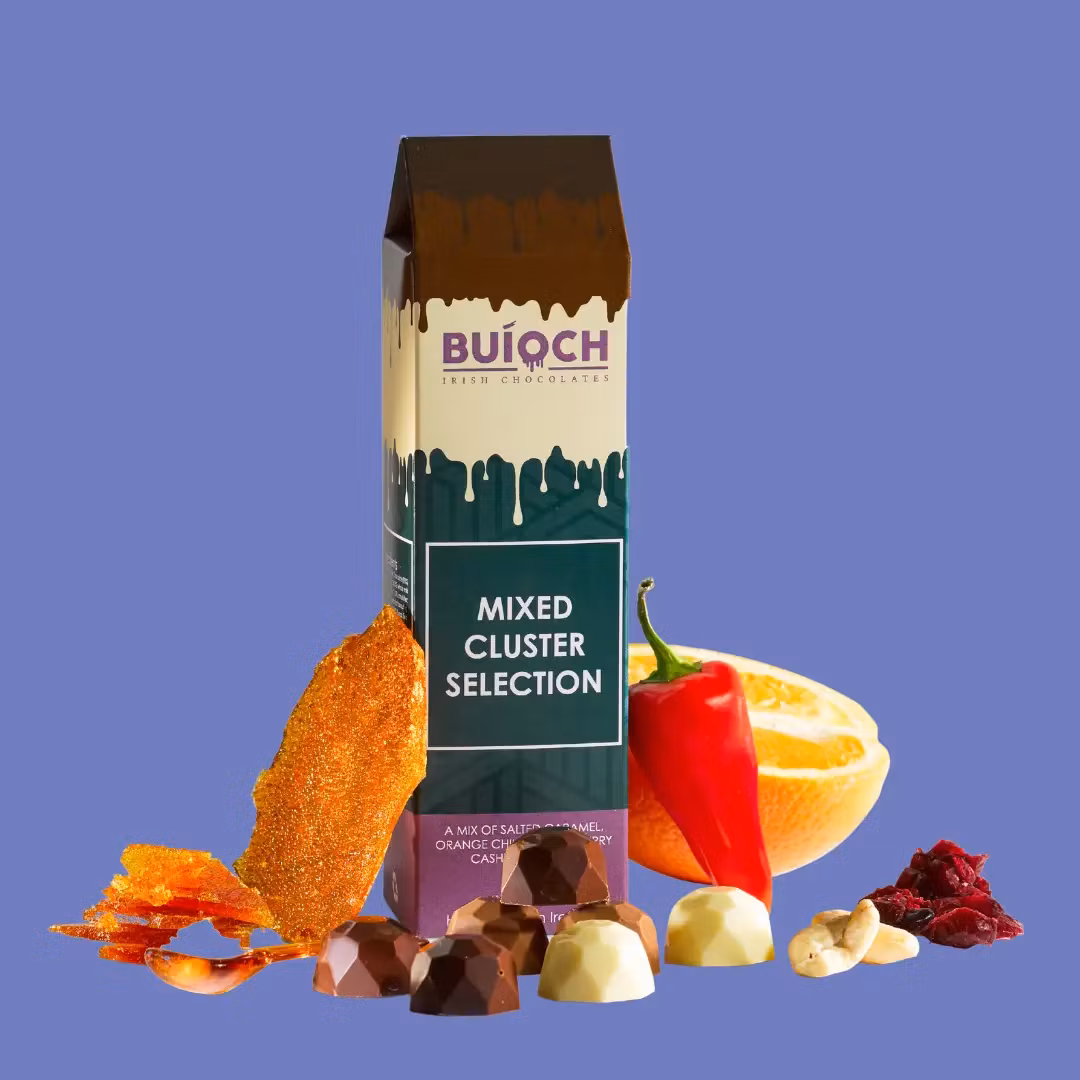 Variety is the spice of life. Inspired by shared experiences, this is a selection of Chocolate Clusters, perfect for getting a taste of three Buíoch classics, or sharing with friends.