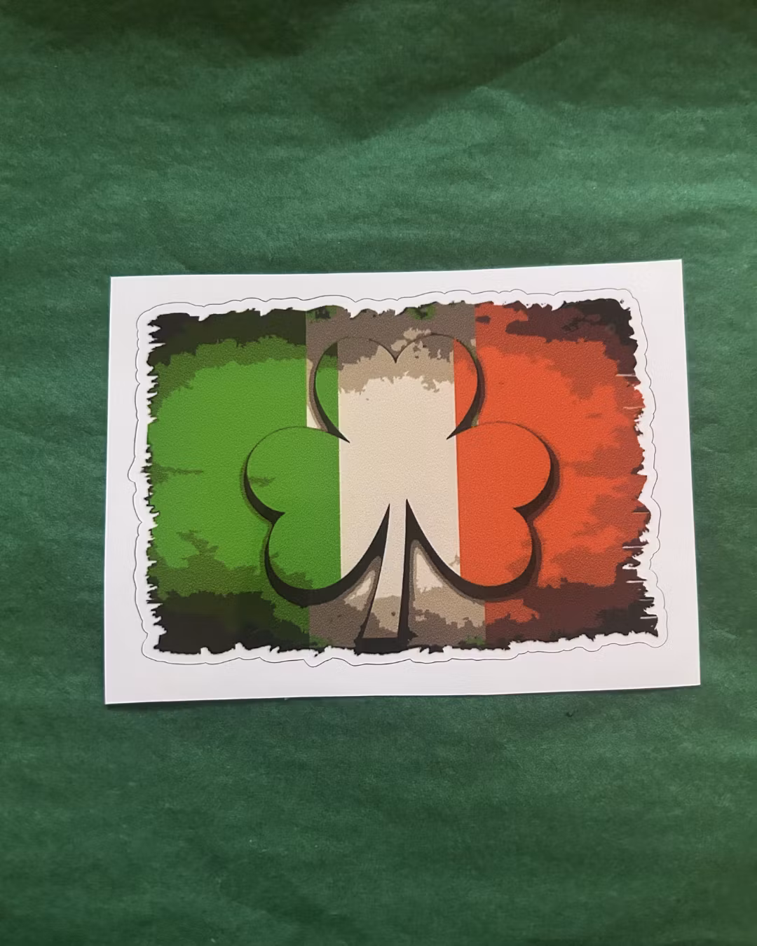 Celebrate Irish heritage with this bold shamrock flag vinyl sticker. The design combines the iconic Irish tricolour with a classic shamrock symbol, creating a striking representation of Irish pride and culture.