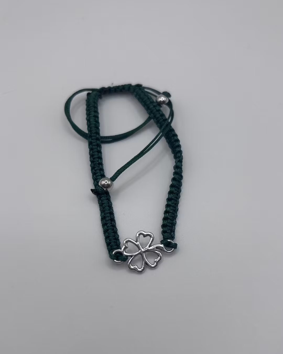 Green with bracelet with a four leaf clover in silver.