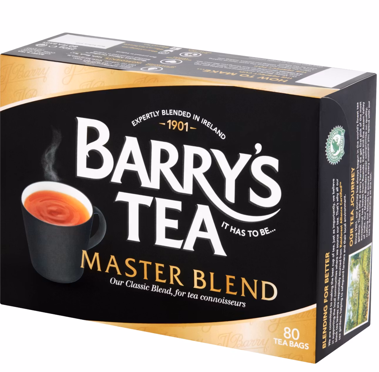 Barry's Tea Master Blend. Previously known as 'Classic Blend' our Master Blend uses the highest quality leaves for a richer, full bodied flavour. The new name reflects the expertise & quality in this blend, showcasing tea from ten of the finest tea gardens in the world. Barry’s Tea Master Blend is for true tea connoisseurs.